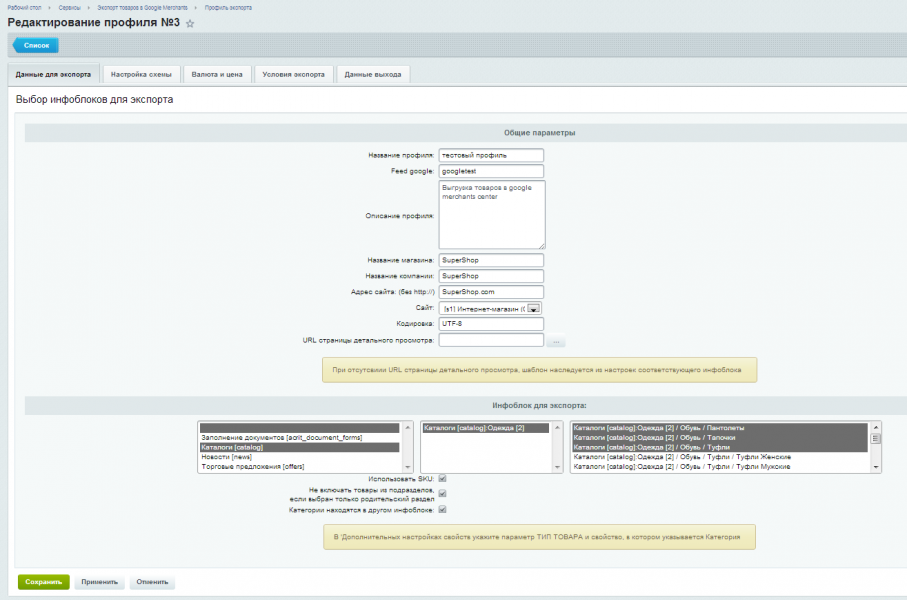 - возможность детализации настройки выгрузки до конечных подразделов каталога