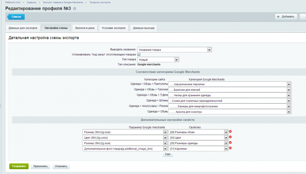 - в модуле реализована поддержка работы со справочниками соответствия категорий Гугла. Данный функционал позволяет выставить соответствие вашей товарной категории