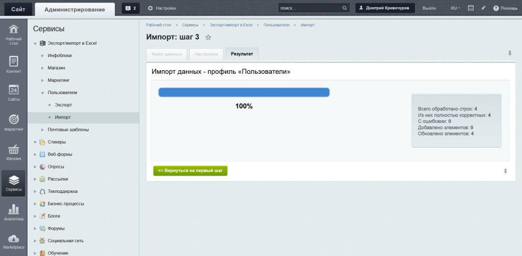 На текущий момент поддерживается экспорт и импорт следующих сущностей: