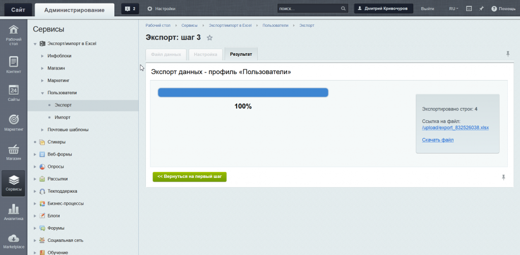 Возможности экспорта.
