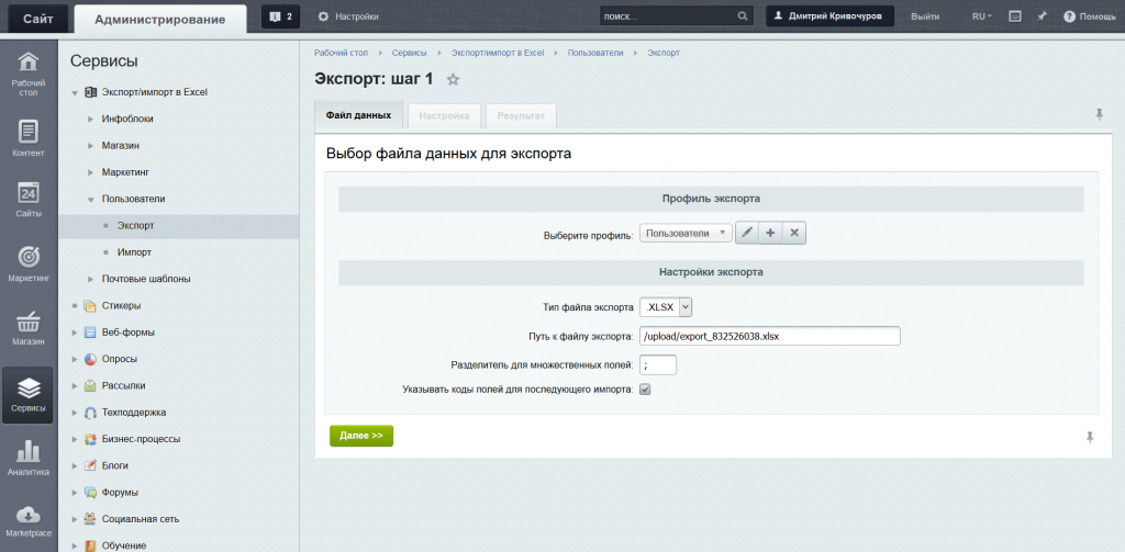 1) Профили экспорта с сохранением всех настроек