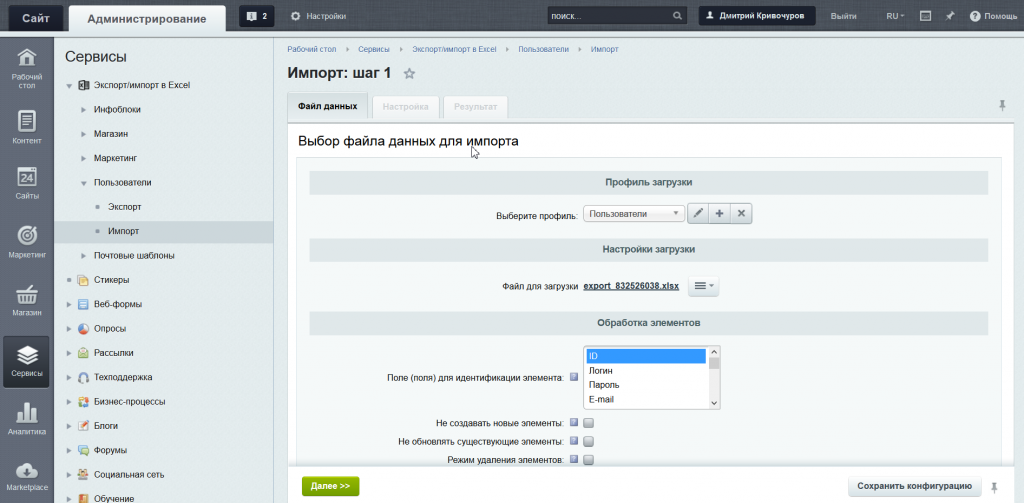 1) Профили импорта с сохранением всех настроек