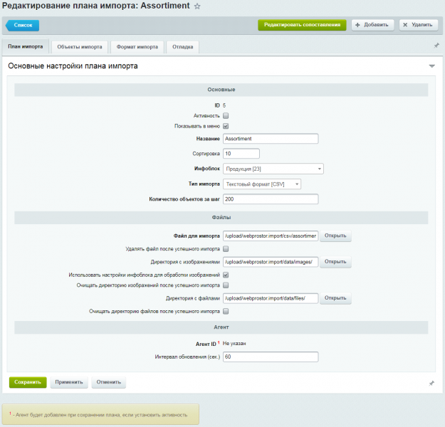 Решение позволяет настроить автоматический импорт различных объектов через агенты или вручную.