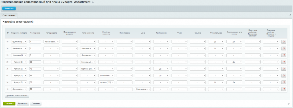 Возможности решения для импорта торговых предложений:- Импорт стандартных и пользовательских полей элементов ТП.