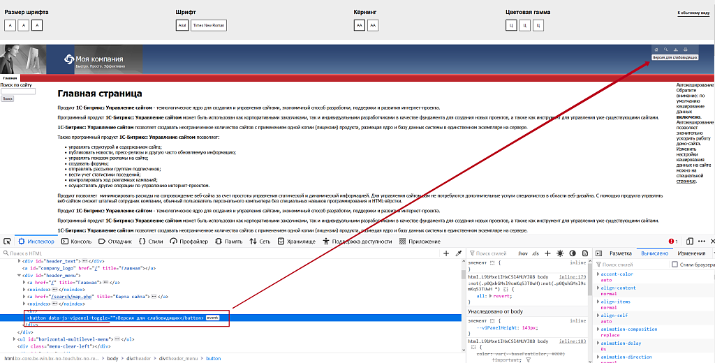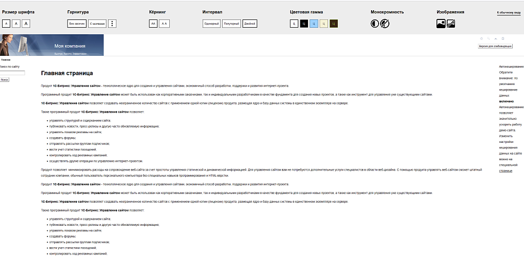Версия для слабовидящих на 1С-Битрикс
