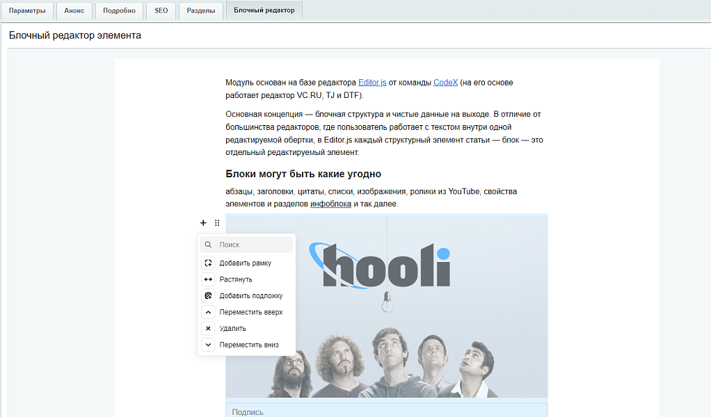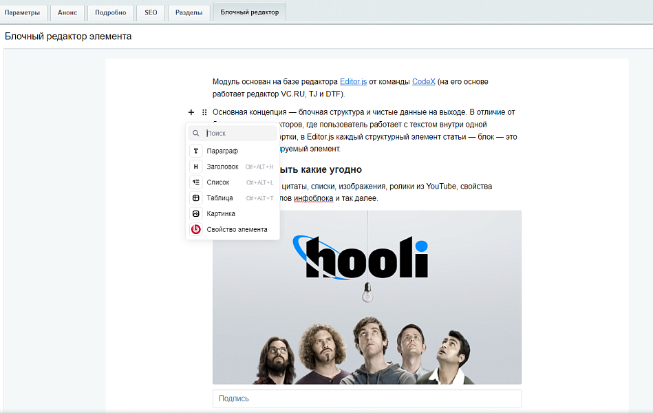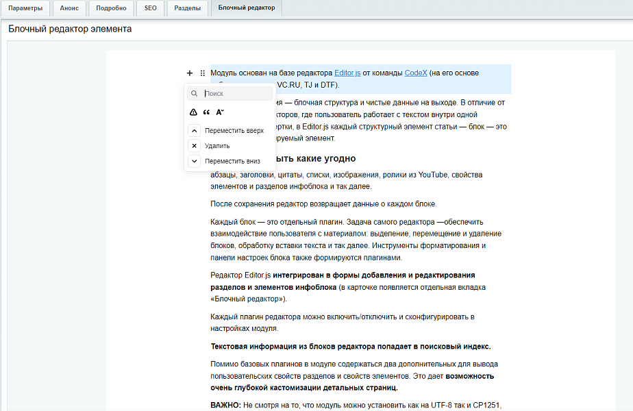 Блочный редактор на 1С-Битрикс