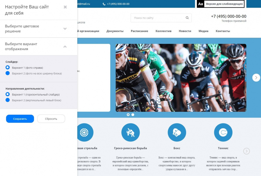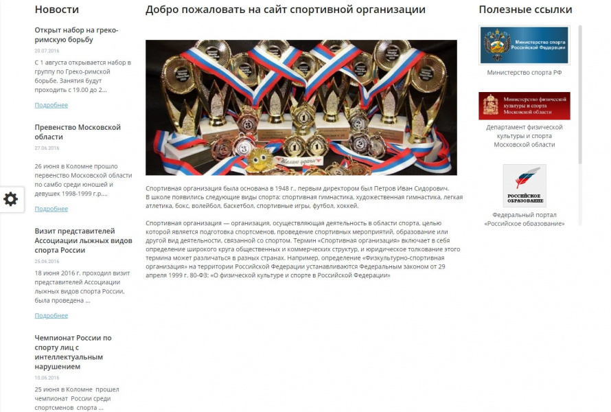 Благодаря разработанному функционалу сайта решение легко адаптировать под любую спортивную организацию и любой контент |  Адаптивная верстка сайта