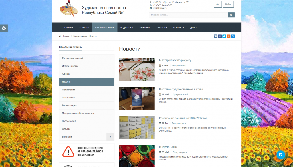 - Продуманная и удобная структура сайта, разработанная специально для художественных школ.
