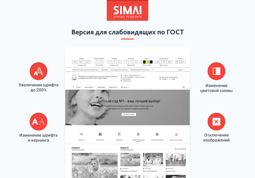 SIMAI-SF4: Сайт детского сада – адаптивный с версией для слабовидящих