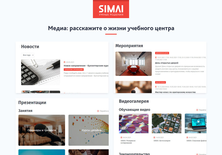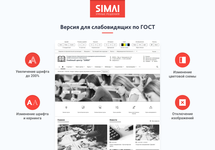 SIMAI-SF4: Сайт учебного центра – адаптивный с версией для слабовидящих