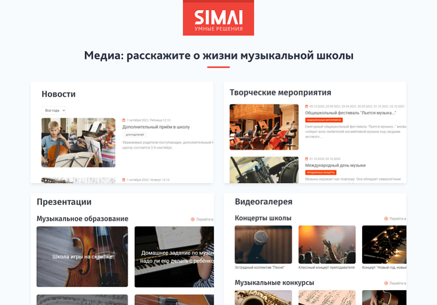 SIMAI-SF4: Сайт музыкальной школы - адаптивный с версией для слабовидящих на 1С-Битрикс