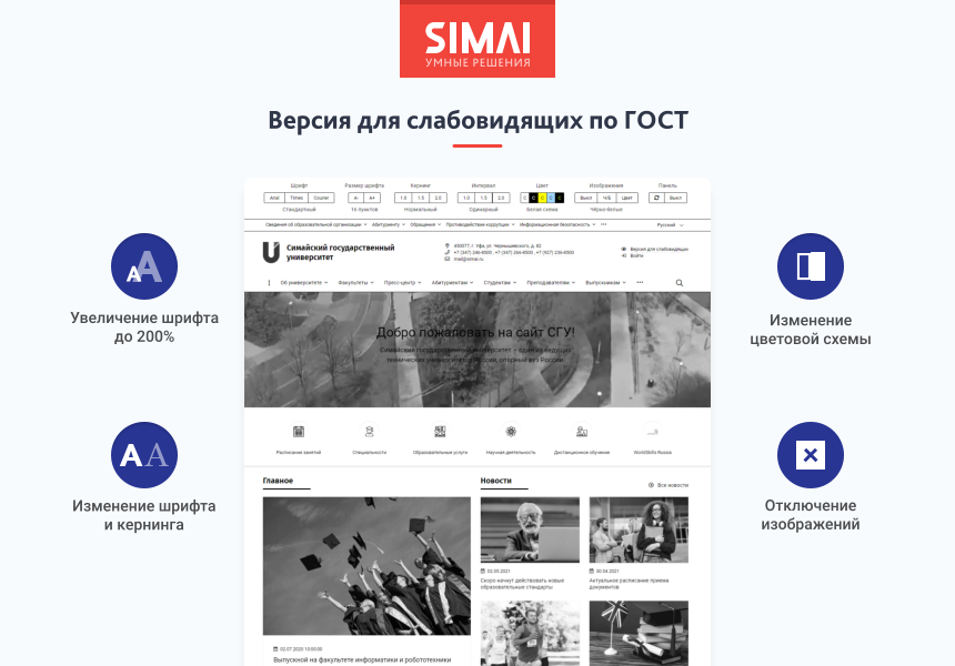 SIMAI-SF4: Сайт университета – адаптивный с версией для слабовидящих