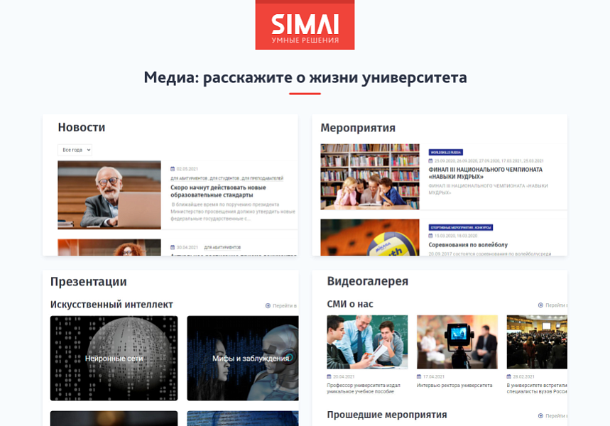 SIMAI-SF4: Сайт университета – адаптивный с версией для слабовидящих на 1С-Битрикс