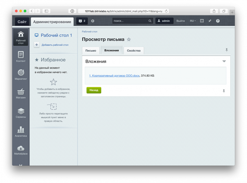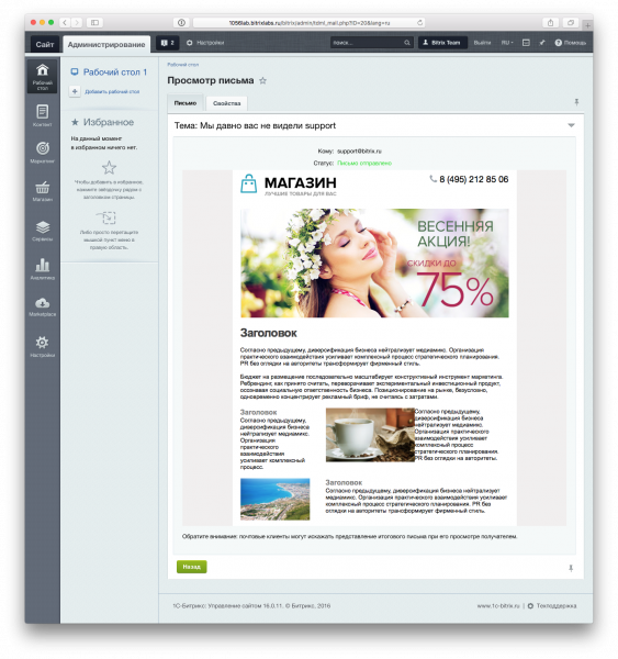 Модуль позволяет просмотреть список реально ушедших писем из Битрикса вашим пользователям.