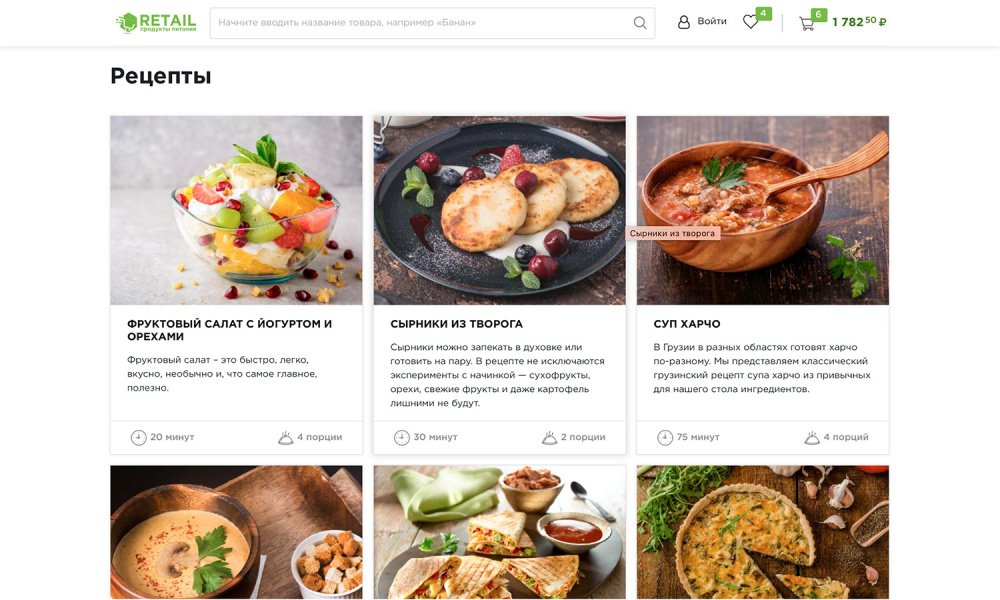 «Каждый элемент главной страницы «Крайт: Продукты питания.Retail»