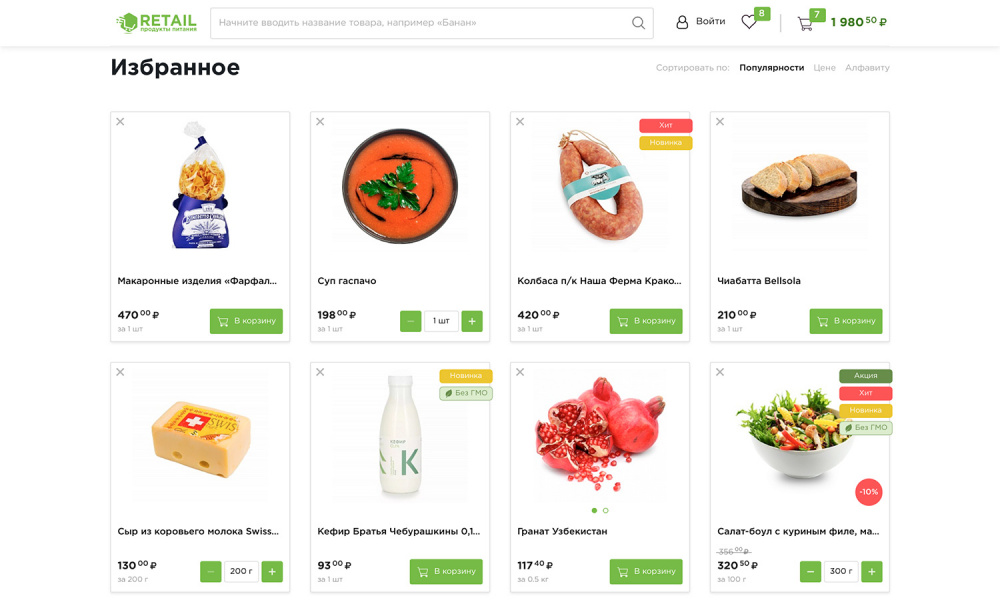 «Крайт: Продукты питания.Retail» товары в поиске отображены в виде плиток