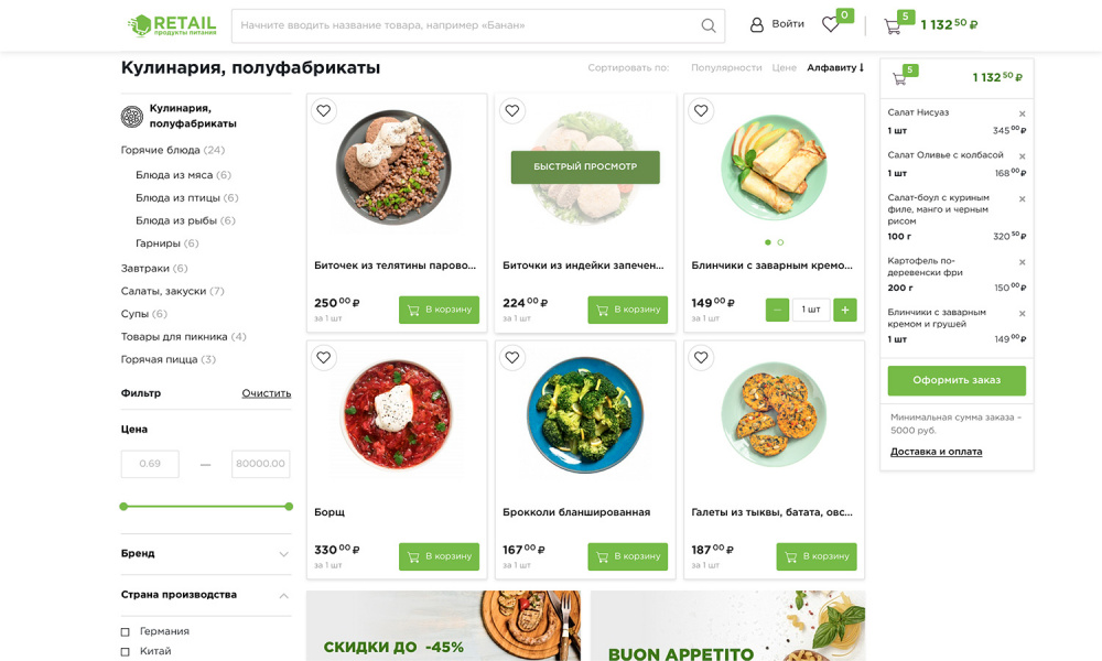 Интернет-магазин продуктов питания обязан иметь специальную корзину,