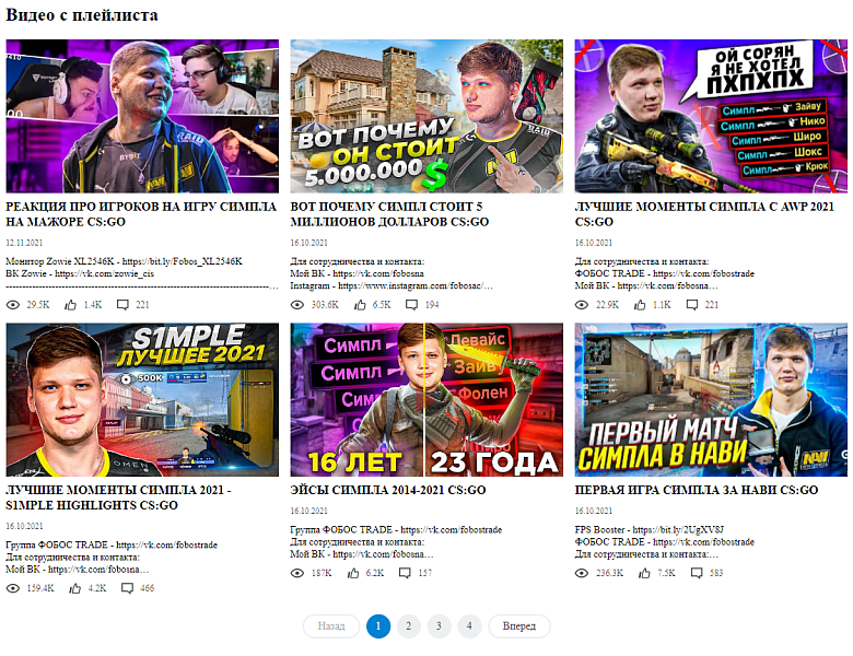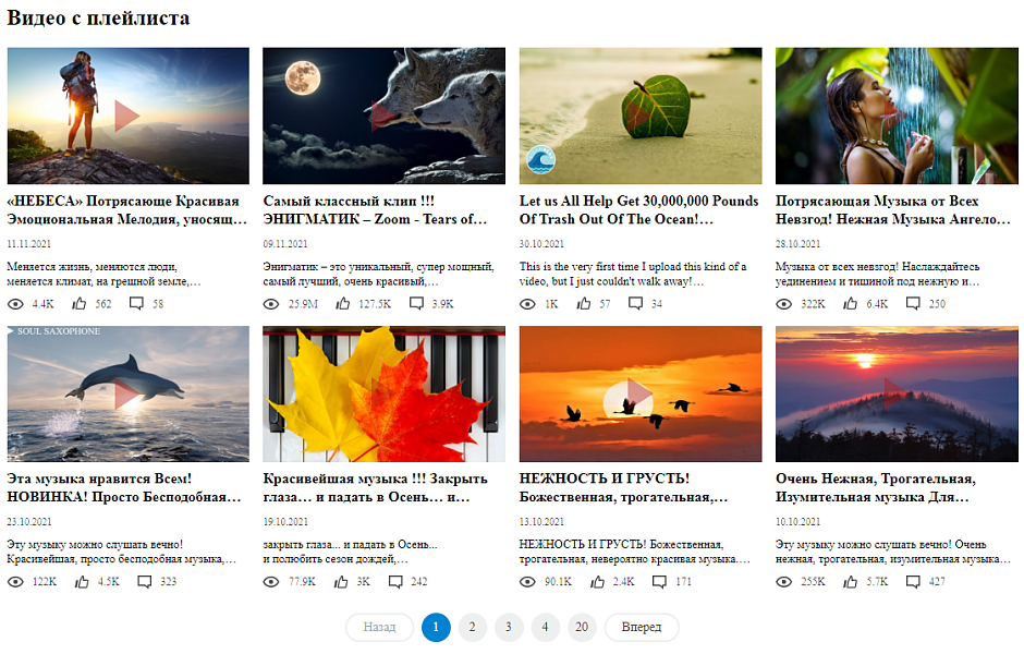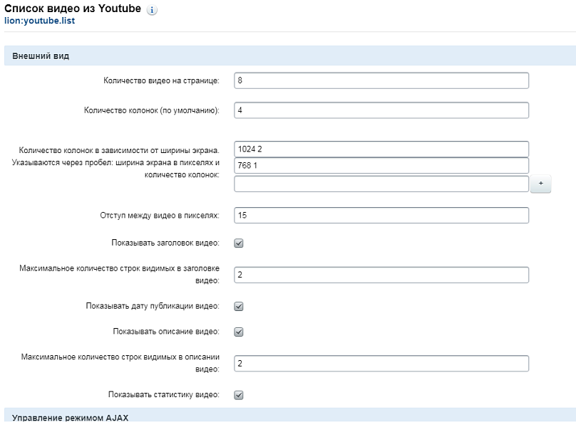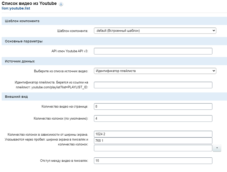Адаптивный список видео с Youtube канала и плейлиста на 1С-Битрикс