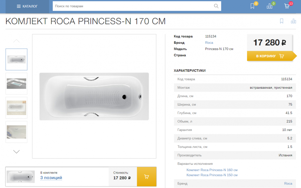 Мы реализовали возможность сравнения товаров в рамках одной категории, ведь глупо сравнивать ванную с унитазом =)