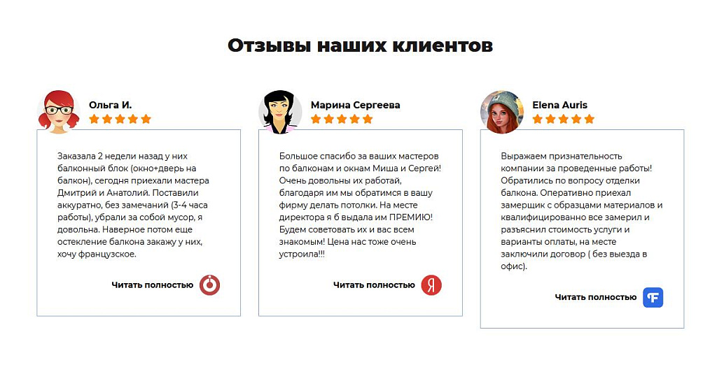 Реализованные сайты