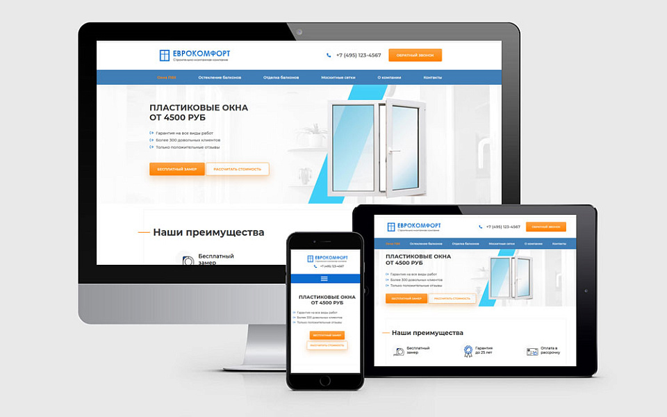 ПВХ Окна балконы - продающий сайт с калькулятором на 1С-Битрикс
