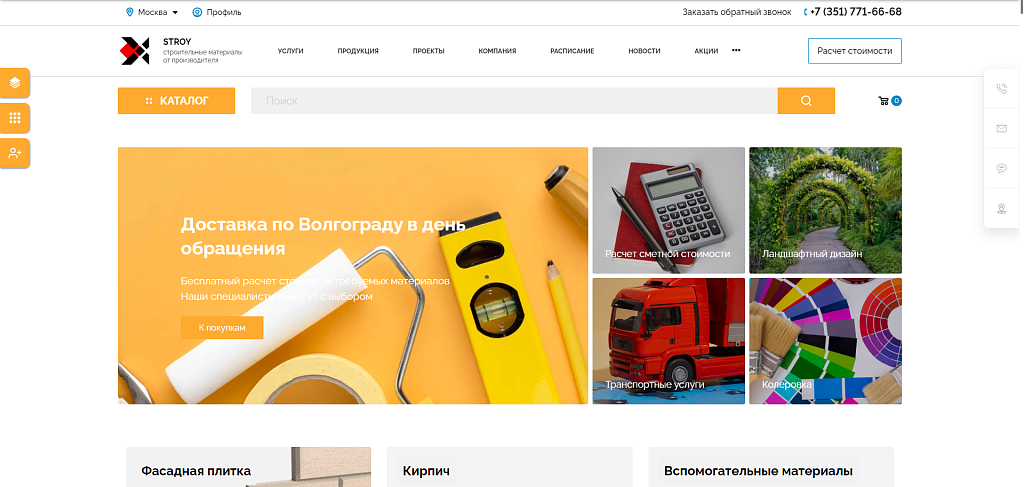 PR-Volga: Строительные материалы. Готовый корпоративный сайт на 1С-Битрикс