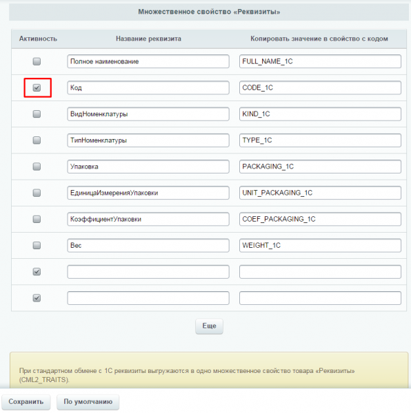 4. Множественное свойство реквизиты выгрузить в отдельные свойстваСтандартный обмен с 1С выгружает дополнительные данные о товаре в одно множественное свойство инфоблока «Реквизиты»: