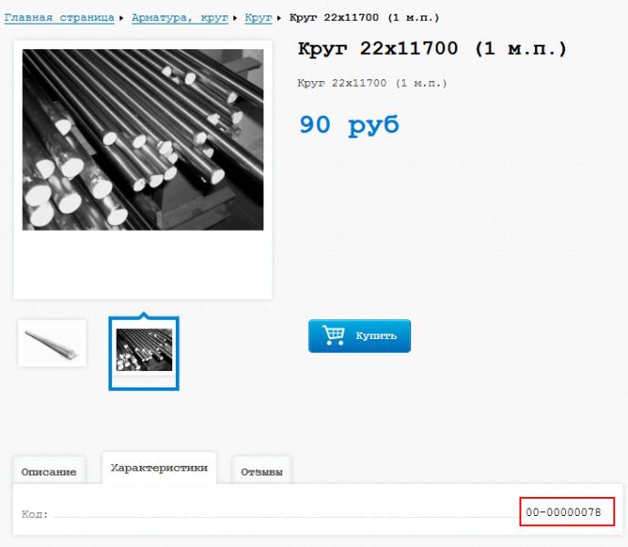 Например, код товара из 1С можно записать в отдельное свойство, чтобы оптовые партнеры или сотрудники могли быстро по коду найти товар.