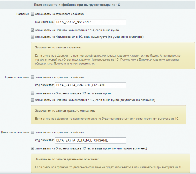 - название на сайте можно выгрузить из Наименования 1C (по умолчанию)