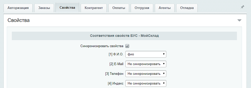 Синхронизация свойств заказа в поля контрагента МойСклад