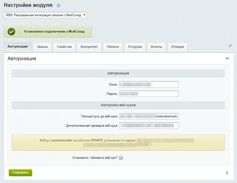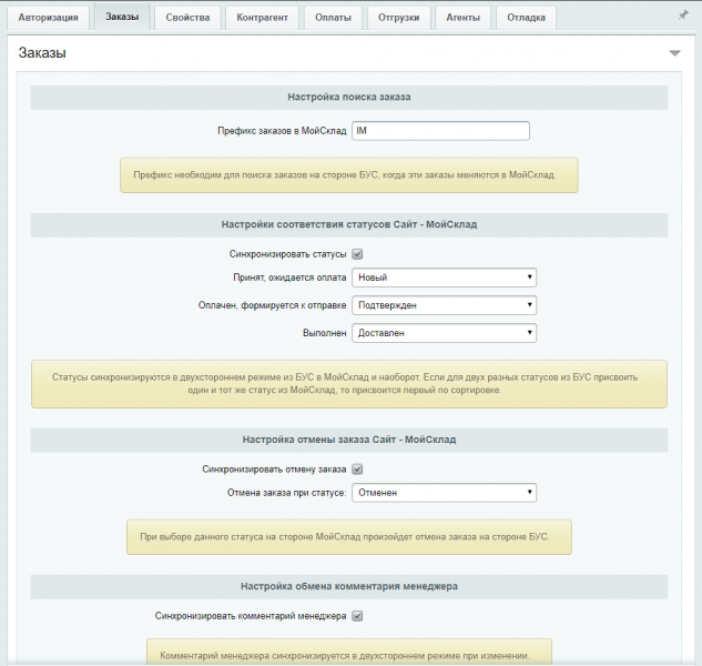 Модуль предназначен для расширенной интеграции заказов в сервис МойСклад.