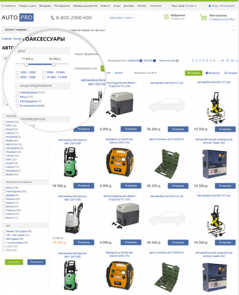 Эффективность и функциональность интернет-магазина на базе шаблона AutoPRO обеспечивается за счет следующих особенностей: