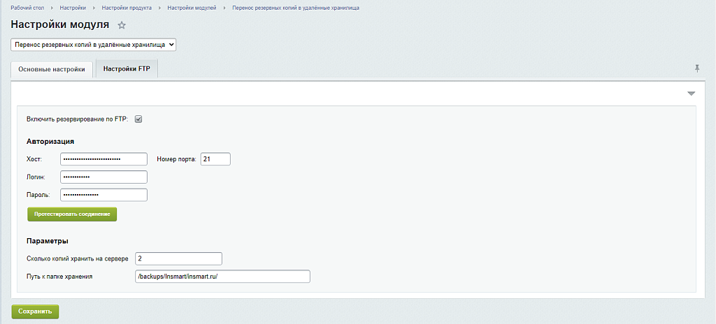 Резервное копирование на FTP на 1С-Битрикс