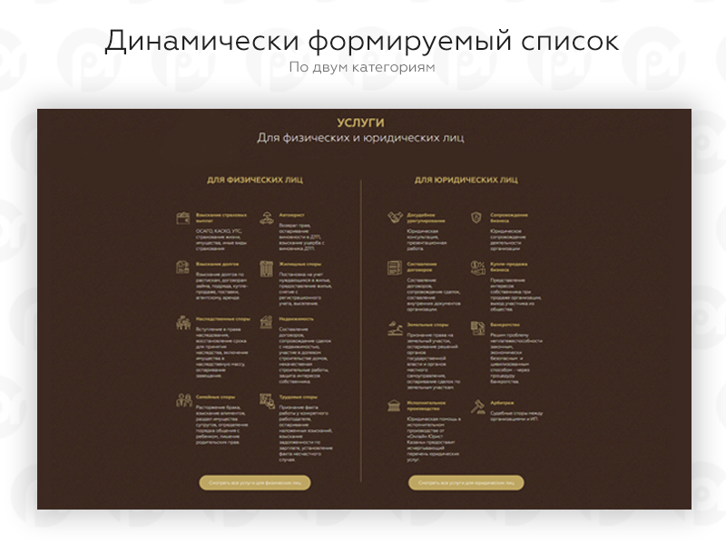Вы можете охватить любое количество юридических услуг в полном отдельном перечне.