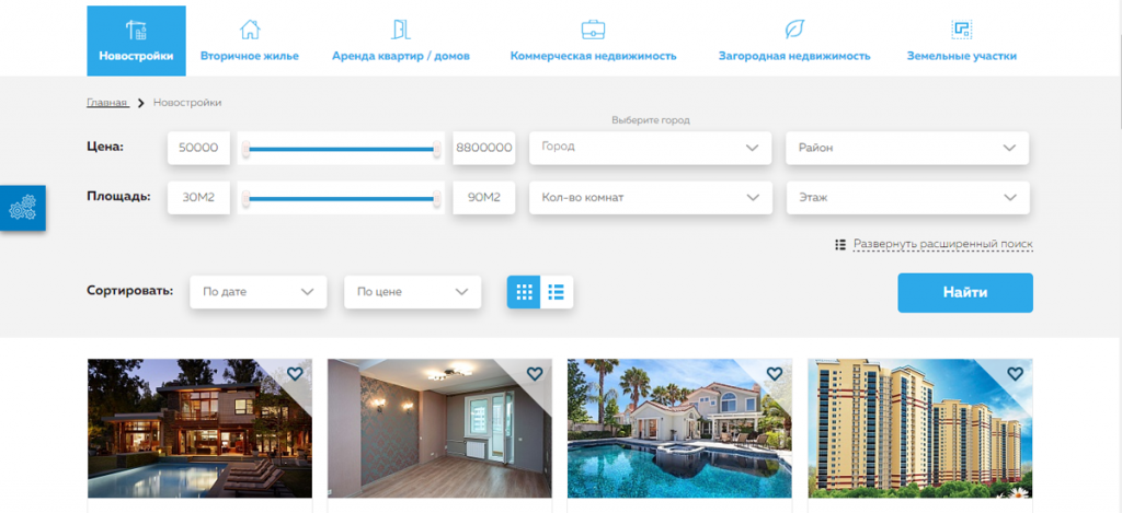 встроенный фильтр на сайте позволяет быстро найти нужный объект