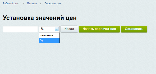 - увеличить или уменьшить цену в заданном проценте от исходной цены