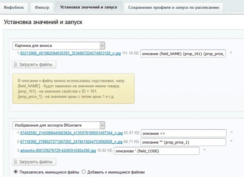 - позволяет составить новое описание анонса элемента инфоблока используя шаблон текстовой заготовки со вставками переменных из свойств элемента инфоблока, таким образом если например импортируете каталог товаров из 1С или из экселя вы можете используя свойства составить автоматически уникальные текстовые описания которые будут максимально удовлетворять SEO требованиям для каталога товаров в публичной части сайта.
