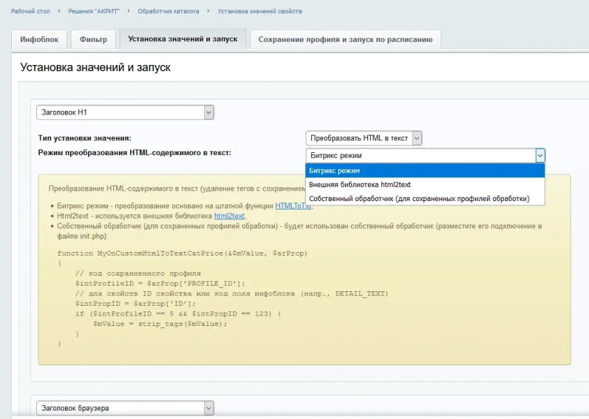 Приобретая модуль вы получите практически не ограниченные возможности автоматизированного управления своим каталогом товаров и элементами инфоблоков.