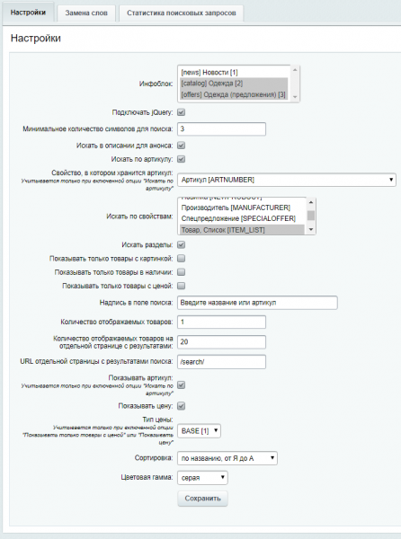 - Возможность поиска сразу по нескольким инфоблокам