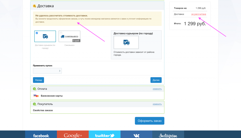Внимание! После того, как администратор магазина добавил стоимость доставки вручную, необходимо закрыть уведомление, о том, что стоимость не рассчитана, чтобы исчезла ошибка с заказом. |