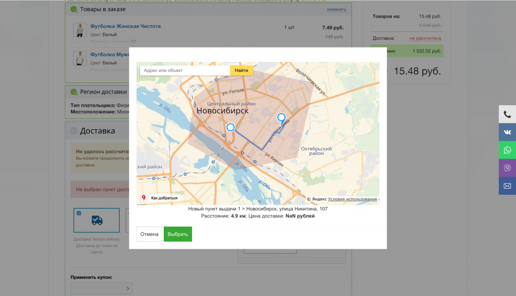 Модуль позволяет рассчитать стоимости доставки, на основе Яндекс.Карт, в зависимости от района(зоны) и удаленности от склада.