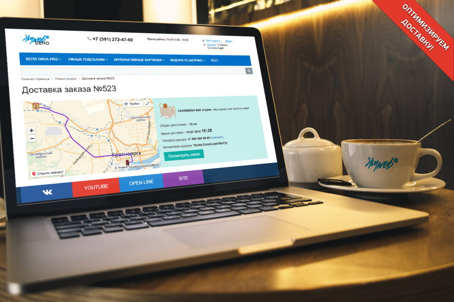 Новый функционал! Отслеживание доставки. При указании курьером статуса Выехал клиенту отправляется письмо, где он он может увидеть информацию откуда едет курьер, через сколько приедет и т.п.