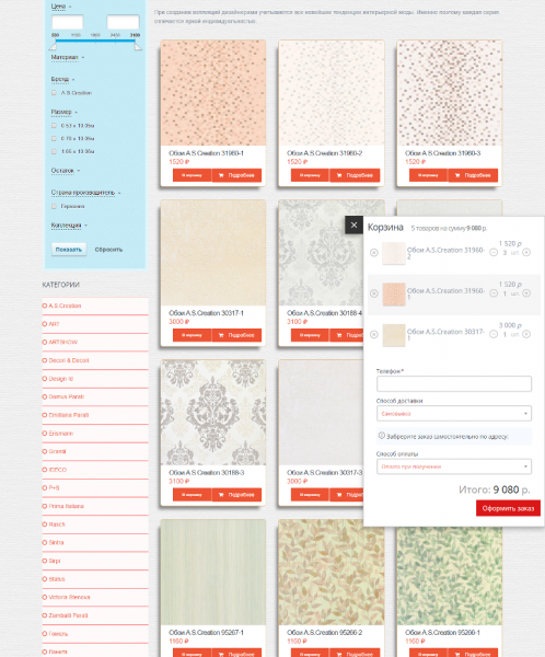 - работает без перезагрузки страницы. При оформлении заказа, пользователя не перенаправляет на другую страницу, клиент остается в каталоге товаров