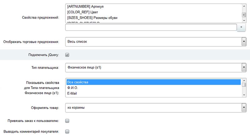 СКУ) с выбором свойств так и без СКУ;