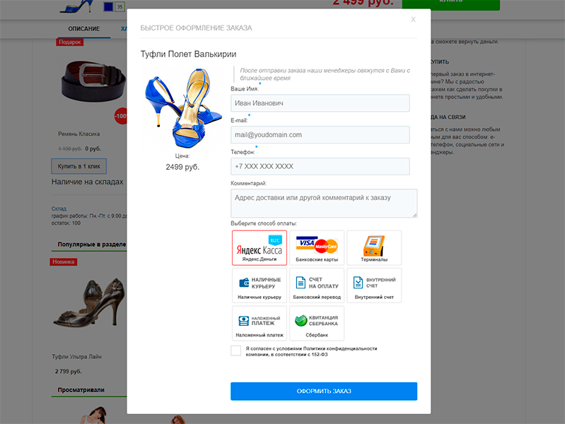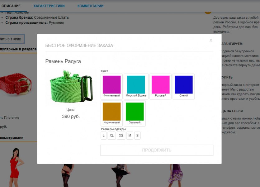 - Параметры товара выбираются прямо на форме быстрого заказа.
