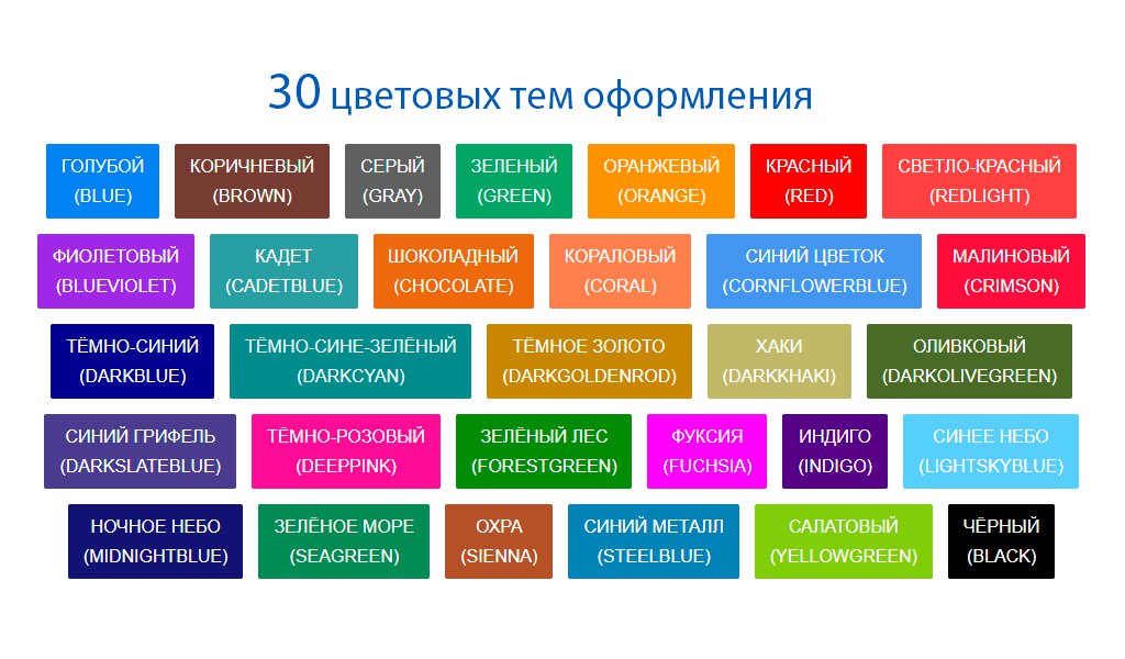 - 30 цветовых схем.