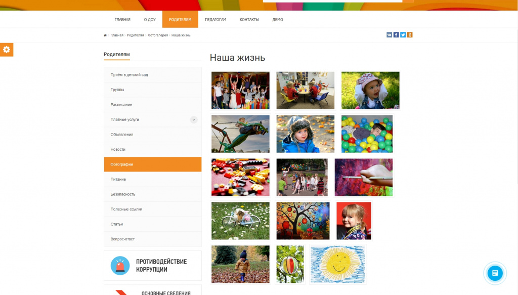 - Социальные инструменты: автоматические виджеты социальных сетей, микроразметка для расшаривания страниц в соцсетях .