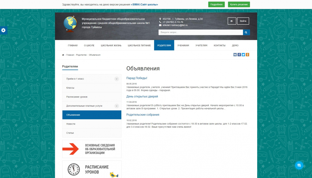 - Бесплатные видео-уроки и учебные курсы по работе с решением – с заполнением сайта легко справится любой сотрудник или старшеклассник без программистов.