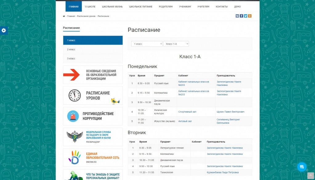 - Персональная страница каждого учителя с необходимой информацией и его расписанием.