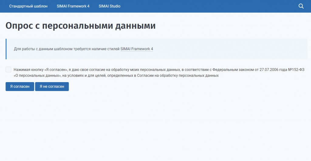 Для опросов, содержащих персональные данные пользователя, предусмотрено использование соглашений Битрикс о персональных данных согласно 152-ФЗ (проведение опросов, включающих персональные данные, без использования соглашений - НЕЗАКОННО!)